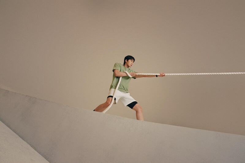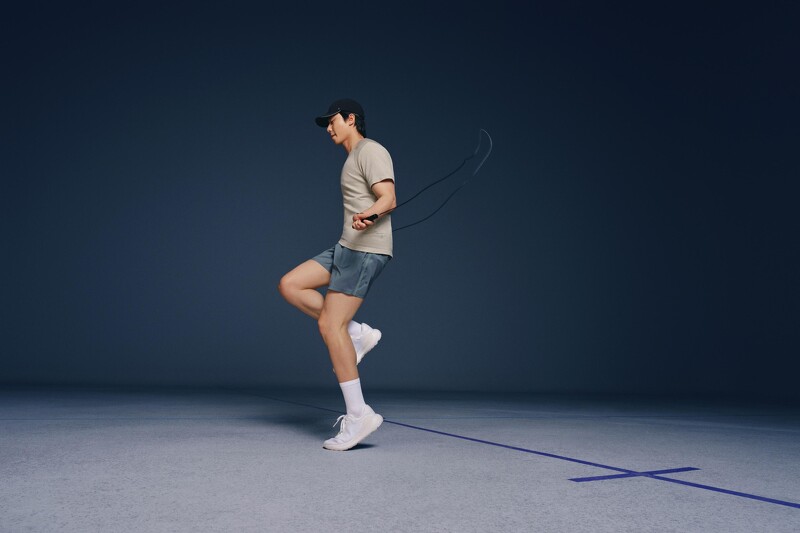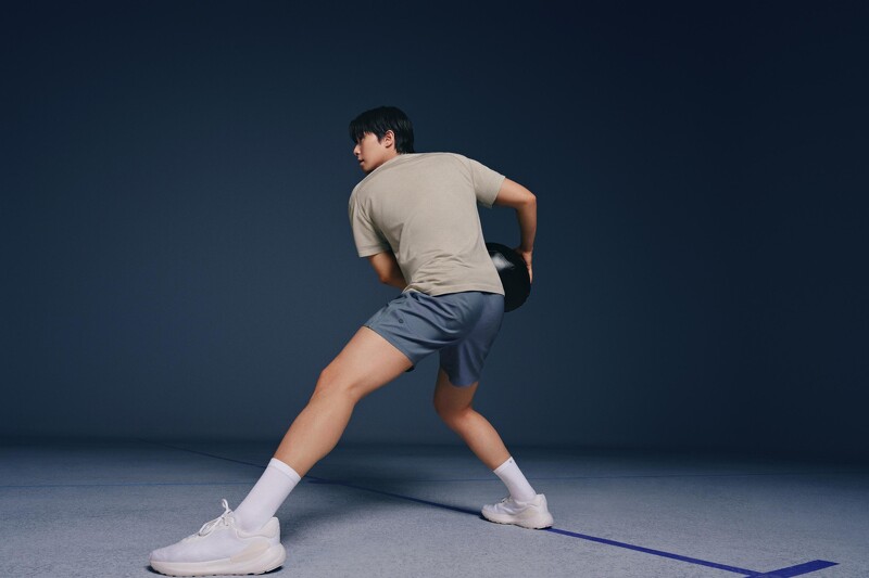 Haram Bae 穿着 Zeroed In 系列单品,系列以简约又实穿的机能剪裁为亮点,短袖 T 恤採用棉质混纺布料打造,触感柔软、具吸湿排汗机能,胸部与腰部的空间设计也让活动时更自在不拘束。